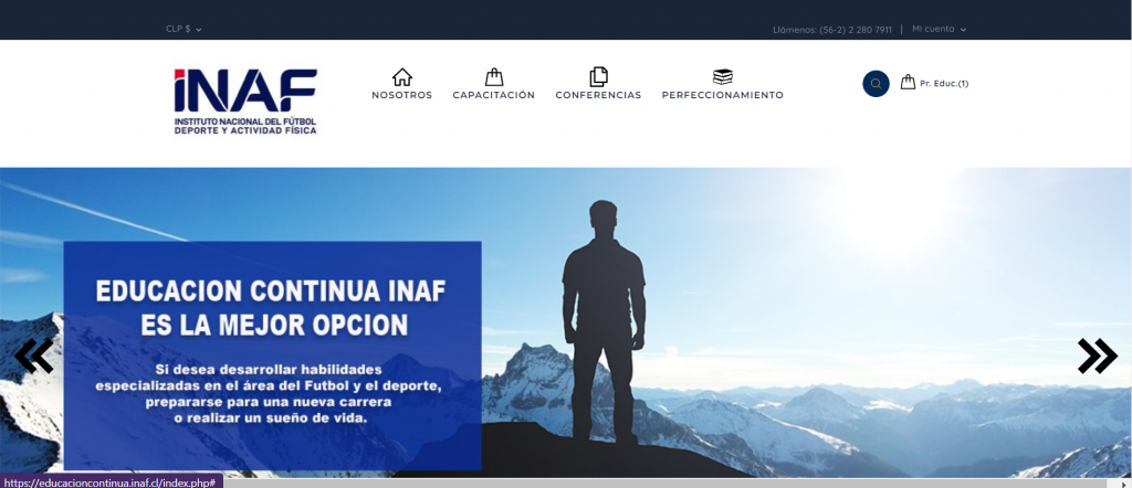 En Agosto de 2018 dentro del proyecto de implementación de la Educación Continua a distancia para todos los públicos de INAF, se debió generar un Customer Journey que permitiera el pago de programas de educación y formación en línea. Para lograr el Objetivo se configuró un ecommerce con pago integrado con webpay que permitiera recaudar en línea y previo al registro en una sala virtual.